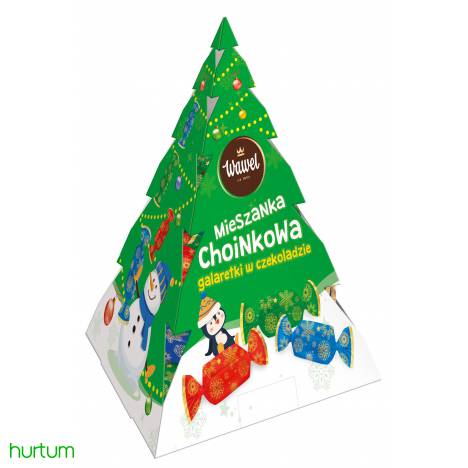 Cukier, syrop glukozowy, czekolada 20% [cukier, miazga kakaowa, tłuszcz kakaowy, tłuszcz roślinny (shea), emulgator: lecytyny],woda, regulator kwasowości: kwas cytrynowy; substancja żelująca: agar; soki owocowe 0,8% z zagęszczonych soków owocowych (mango, kiwi, banan), naturalne aromaty. Czekolada: masa kakaowa minimum 43%.